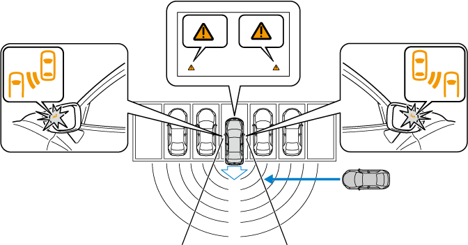 The RCTA system detects vehicles approaching from the left and right sides of the vehicle, and the rear of the vehicle while the vehicle is being reversed out of a parking space, and notifies the driver of possible danger using the Blind Spot Monitoring (BSM) warning indicator lights and the warning buzzer.