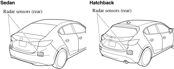 For repairs or replacement of the radar sensors (rear), or bumper repairs, paintwork, and replacement near the radar sensors, consult an Authorized Mazda Dealer.