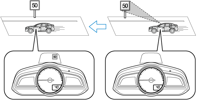 The TSR helps prevent the driver from overlooking traffic signs and provides support for safer driving. Depending on the weather conditions or problems with traffic signs, a traffic sign may not be recognized or a traffic sign different from the actual traffic sign may be displayed. Always make it your responsibility as a driver to check the actual traffic signs. Otherwise, it could result in an accident.