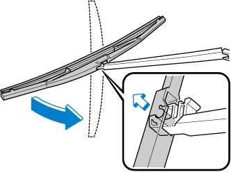 Firmly rotate the wiper blade to the right until it unlocks, then remove the blade.