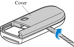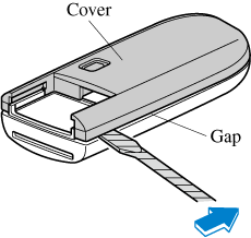 Twist a tape-wrapped flathead screwdriver in the direction of the arrow and open the cover slightly.