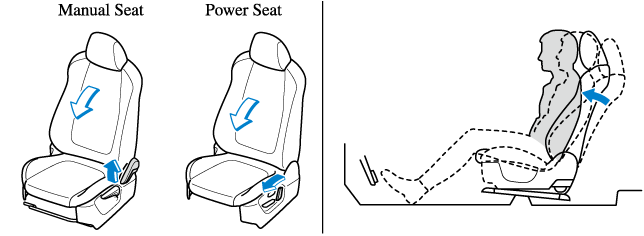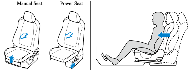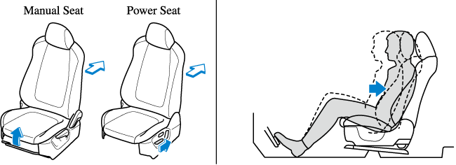 With the manual seat, if you raise the seat height, the seat moves forward. Adjust the seat forward or back again.