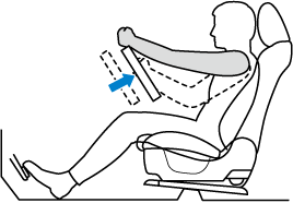 With your back resting against the seatback, extend both arms, place them on the top of the steering wheel, and pull the steering wheel towards you to the position of your wrists.