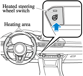 Press the switch to turn on the heated steering wheel. The heated steering wheel operates for about 30 minutes and then turns off automatically.
