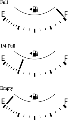 After refueling, it may require some time for the indicator to stabilize. In addition, the indicator may deviate while driving on a slope or curve since the fuel moves in the tank.