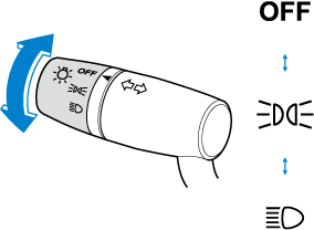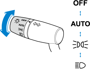 Turn the headlight switch to turn the headlights and other exterior lights on or off.