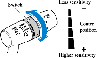The sensitivity of the rain sensor can be adjusted by turning the switch on the wiper lever.