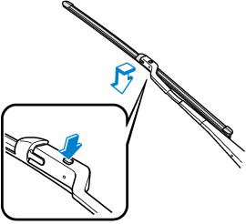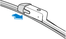 Slide the blade component in the direction of the arrow while pressing the wiper arm tab to remove the blade component from the wiper arm.