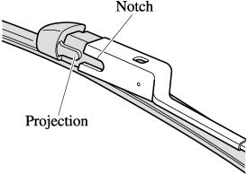 Do not bend the blade rubber unnecessarily when replacing it. Otherwise, the metal stiffener in the blade may deform and the windshield wiper operation may be adversely affected.
