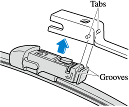 Align the wiper arm tabs with the blade component grooves.
