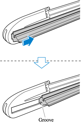 Insert the end of the new blade rubber into the groove of the blade holder until it contacts the end of the blade holder.