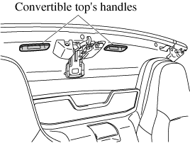 To raise the convertible top from inside the vehicle, use the convertible top's handles.