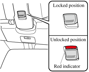 If the red indicator is visible on the lock release button, the convertible top is not locked. After locking the convertible top, verify that the red indicator is not visible.