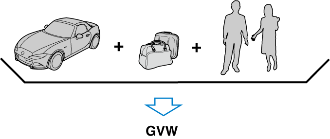 GAW (Gross Axle Weight) is the total weight placed on each axle (front and rear) - including vehicle curb weight and all payload.