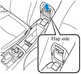 Insert the divider into the armrest from the top with the flap side of the divider facing the underside of the armrest, and press it in until a click sound is heard.