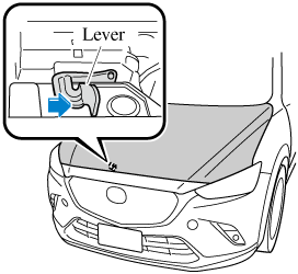 Insert your hand into the hood opening, slide the latch lever to the right, and lift up the hood.