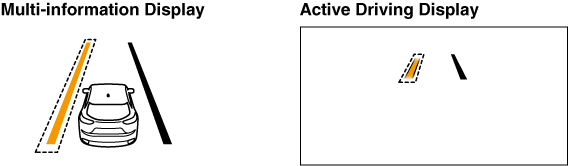 If the system determines that the vehicle may deviate from its lane, the color of the lane line on the side being detected by the system changes from white to amber, and flashes.