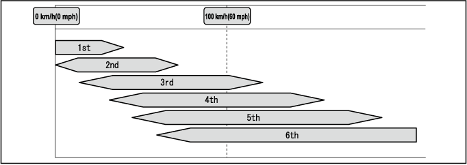 For each gear position while in the manual mode, the speed limit is set as follows: When the selector lever is operated within the range of the speed limit, the gear is shifted.