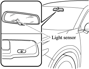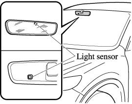 The auto-dimming mirror automatically reduces the glare of headlights from vehicles at the rear when the ignition is switched ON.