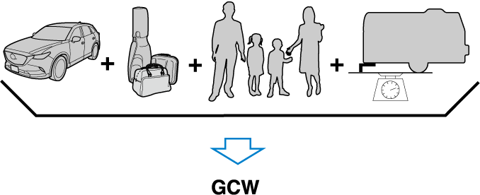 GCW (Gross Combination Weight) is the weight of the loaded vehicle (GVW) plus the weight of the fully loaded trailer.