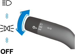 3. When the ignition is switched from ON to ACC or OFF, the headlights remain on if the auto headlight off function has been canceled. If the auto headlight off function is enabled, the lights turn on for the set period using the auto headlight off function, and then they turn off.