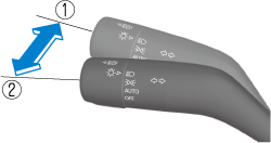The headlights switch between high and low beams by moving the lever forward or backward.
