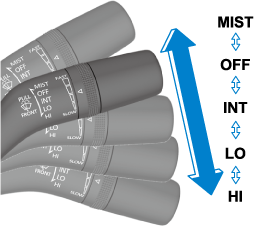 Rotate the switch upward (FAST direction) to shorten the interval time of the wiper operation, and rotate the switch downward (SLOW direction) to lengthen it.