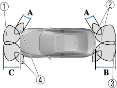 Rear ultrasonic sensor: Approx. 60.0―45.0 cm (23.6―17.7 in) Rear corner ultrasonic sensor/Rear side ultrasonic sensor: Approx. 55.0―38.0 cm (21.6―14.9 in) |