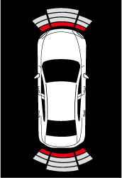 Front ultrasonic sensor: Approx. 45.0―35.0 cm (17.7―13.7 in) Front corner ultrasonic sensor: Approx. 38.0―25 cm (14.9―9.8 in) |