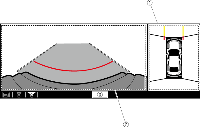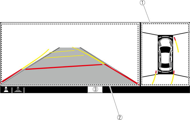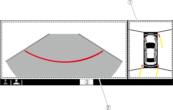 Displays the image of the area around the vehicle and the rear of the vehicle.