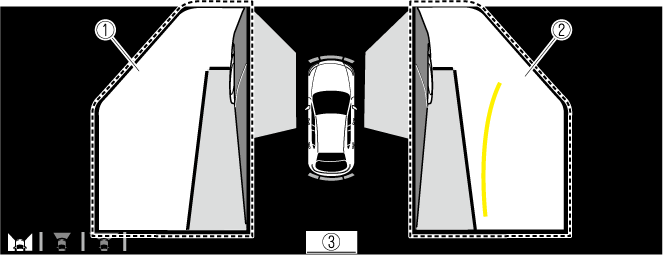 Displays the image of the area around the vehicle and the rear of the vehicle (wide-area).