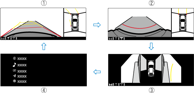 The displayed screen can be changed each time the 360°view monitor switch is pressed.