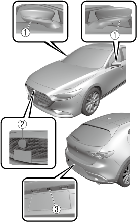 Your vehicle is equipped with a front camera, side cameras, and a rear camera. The 360°View Monitor uses each camera.