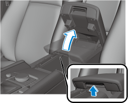 The lid can be opened/closed while it is slid to the 1st and 2nd stages, but if the rear seatback is folded, the lid cannot be opened/closed while it is slid to the 2nd stage because the rear seat (head restraint) will contact it.