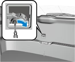 1. Wrap the end of a flathead screwdriver in a cloth and remove the cover on the interior surface of the liftgate using it.