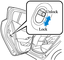 If you slide the child safety lock to the lock position before closing that door, the door cannot be opened from the inside. The door can only be opened by pulling the outside handle.