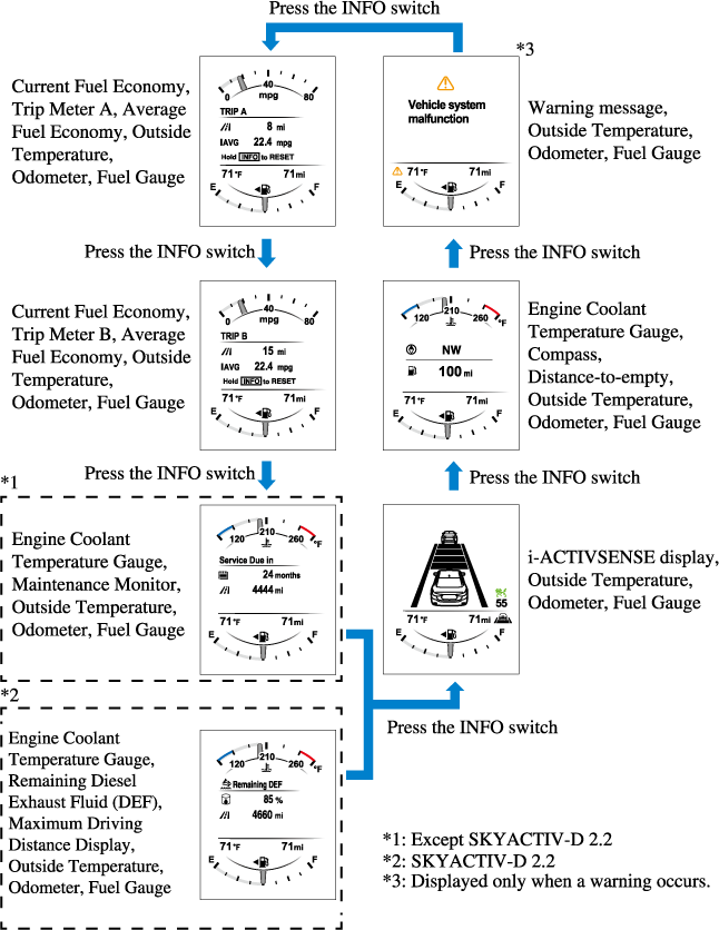 Remaining Diesel Exhaust Fluid (DEF) and Maximum Driving Distance Display (SKYACTIV-D 2.2)