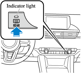 To turn on the windshield wiper de-icer, switch the ignition ON and press the rear window defogger switch (Search).