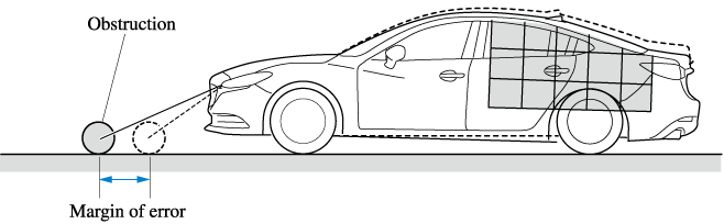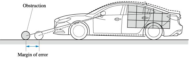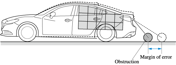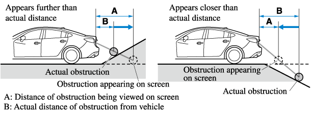 If there is a steep up or down grade in the road at the front or rear of the vehicle, obstructions picked up by the camera can appear farther or closer than the actual distance from the vehicle.
