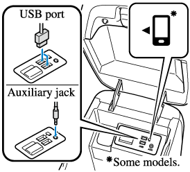 Do not place objects or apply force to the auxiliary jack/USB port with the plug connected.