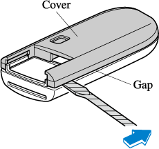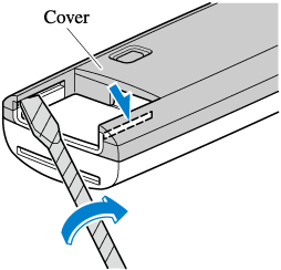 Twist a tape-wrapped flathead screwdriver in the direction of the arrow and open the cover slightly.