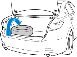 Put the flat tire into the trunk on the left and toward the back.