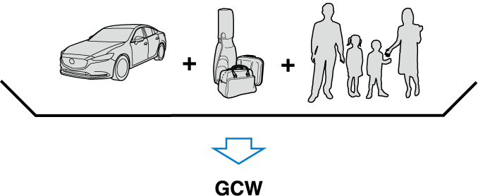 GCW (Gross Combination Weight) is the weight of the loaded vehicle (GVW).