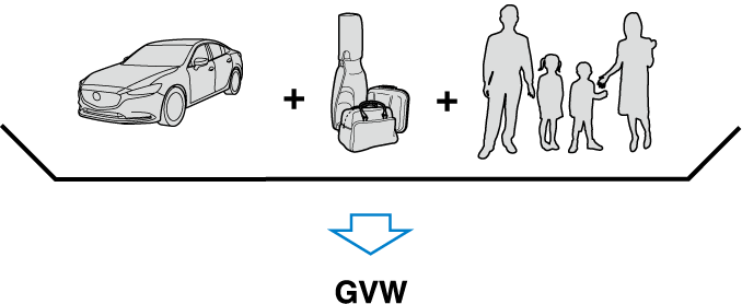 GAW (Gross Axle Weight) is the total weight placed on each axle (front and rear) - including vehicle curb weight and all payload.