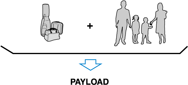 The cargo weight limit with two occupants is 385 kg (849 lbs) - (68 × 2) kg ( (150 × 2) lbs) = 249 kg (549 lbs)
