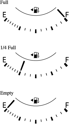 The fuel gauge shows approximately how much fuel is remaining in the tank when the ignition is switched ON. We recommend keeping the tank over 1/4 full.