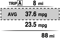 The average fuel economy is calculated every minute from the total traveled distance on the trip meter and the total fuel consumption, and the average fuel economy for either TRIP A or TRIP B is displayed.
