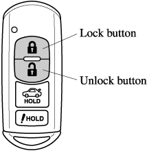 When the ignition switch and the headlight switch are in the following conditions, the headlights will illuminate when the transmitter unlock button is pressed and the vehicle receives the transmitter signal. The headlights turn off after a certain period of time has elapsed (30 seconds).
