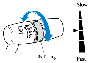 Set the lever to the intermittent position and choose the interval timing by rotating the ring.