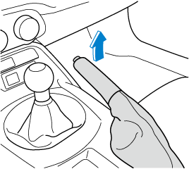 Depress the brake pedal and then firmly pull the parking brake lever fully upwards with sufficient force to hold the vehicle in a stationary position.